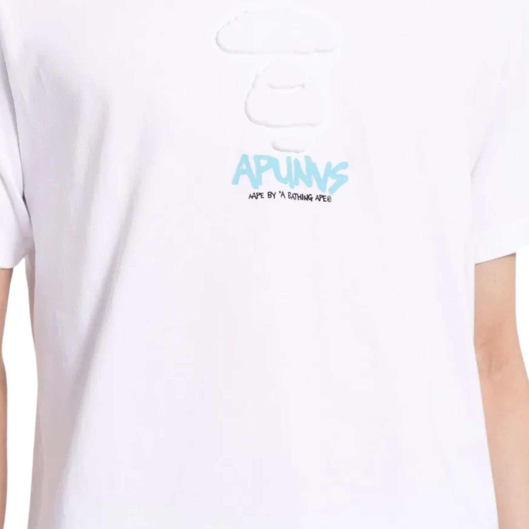 Elevate your style with our Aape T-Shirt, featuring the iconic Moonface Logo in white. Made with high-quality materials for superior comfort, this shirt will make a statement wherever you go. Show off your unique fashion sense and turn heads with every wear. Upgrade your wardrobe with Aape!