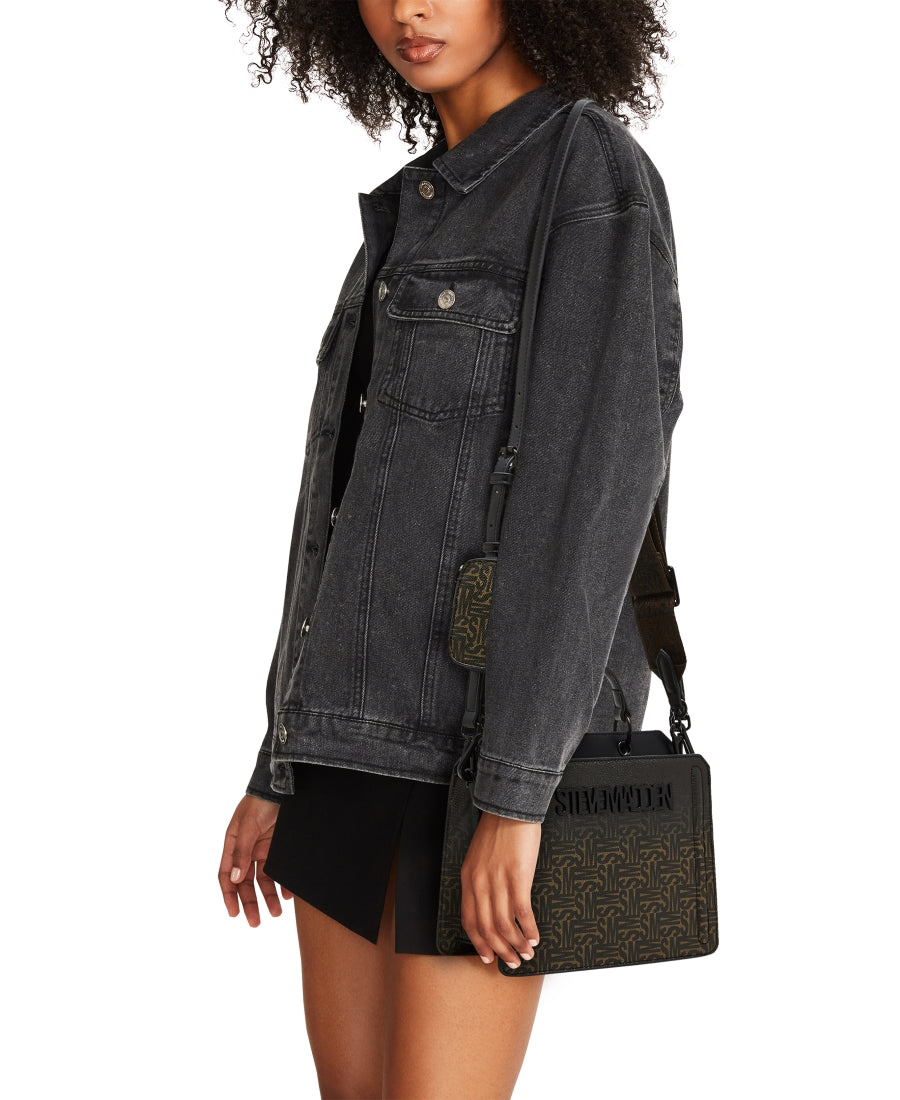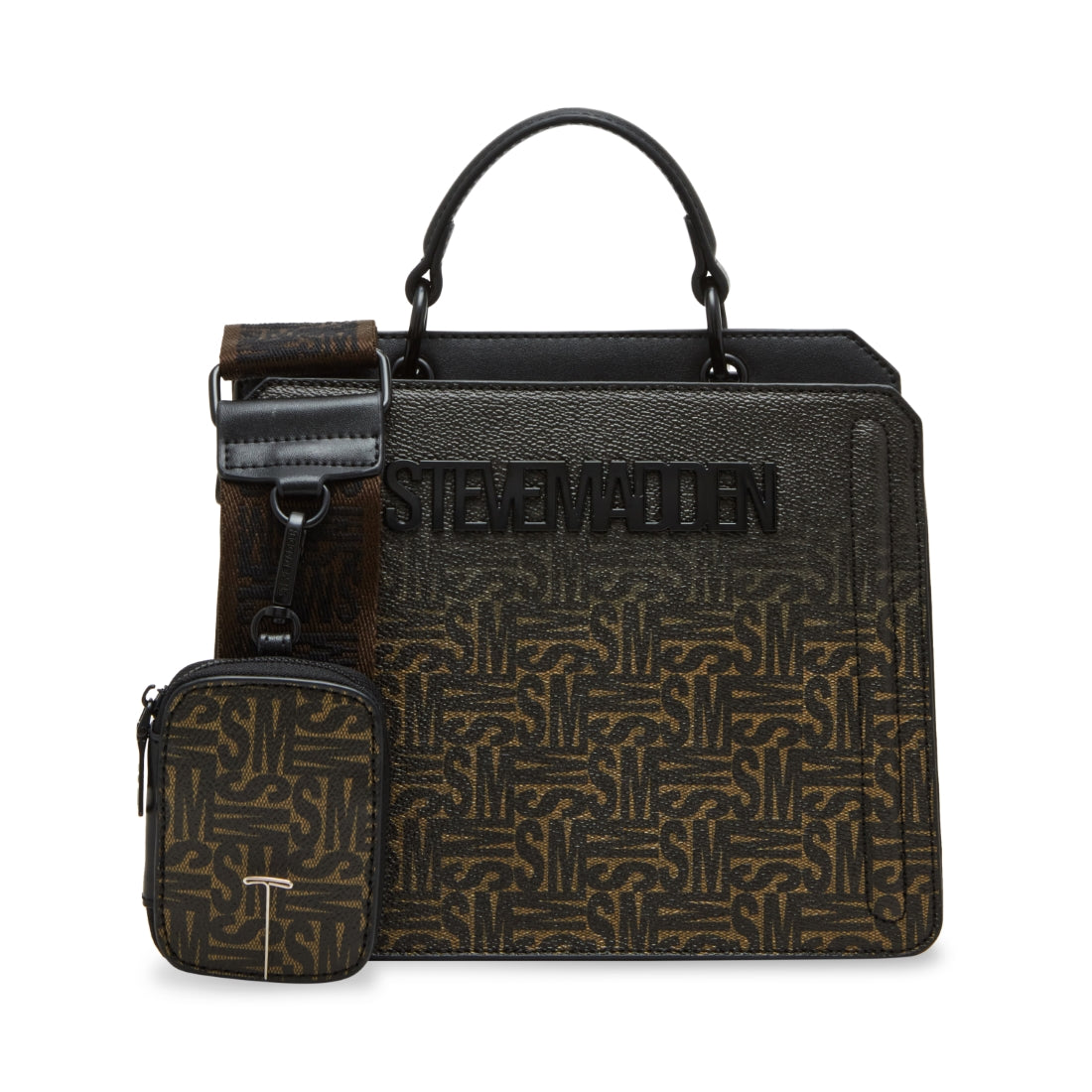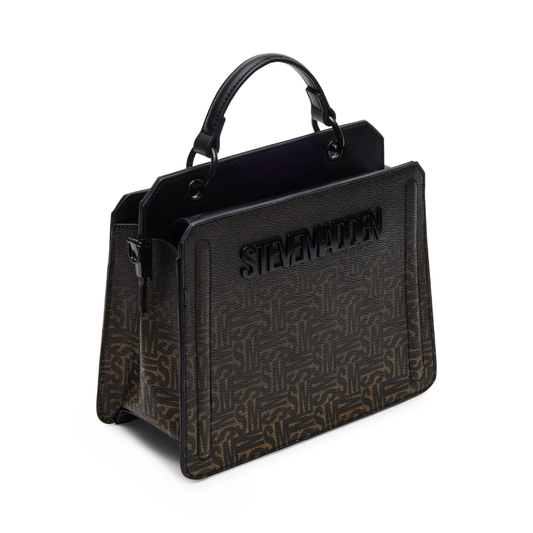 Clever interior organization and a matching modular zip pouch give the compact BEVELYN bag a surprisingly roomy storage. Reinforced edges, structured side gussets, and custom hardware add to the substantial look and feel of this top-handle design.
