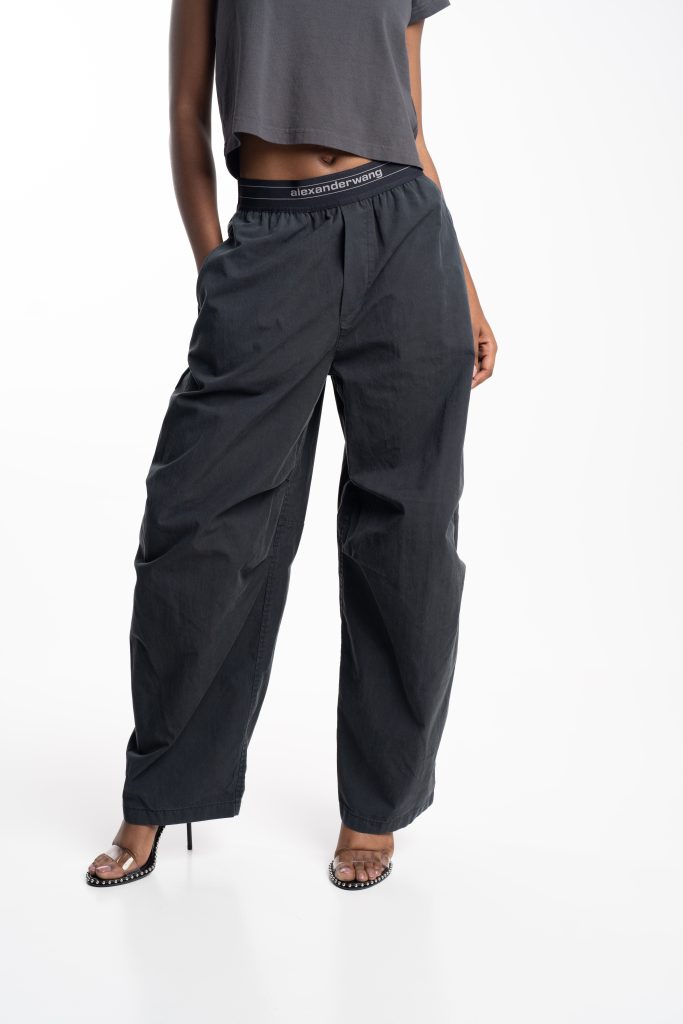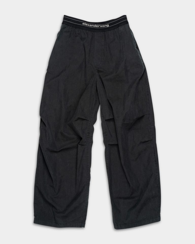 Alexander Wang Mid Rise Pleated Knee Pant w/Logo Elastic Black | 1WC4254924-001