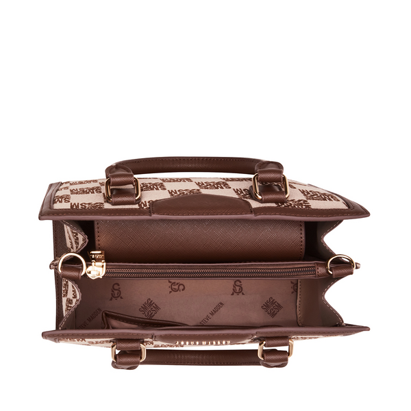A spacious interior our BJAYDE-5 satchel an ideal everyday handbag. Logo hardware and chain-link accents give this Signature-print canvas handbag a glamorous touch, while a detachable crossbody strap keeps your hands free and belongings close by. We think it’s the perfect carryall for travel days and more.