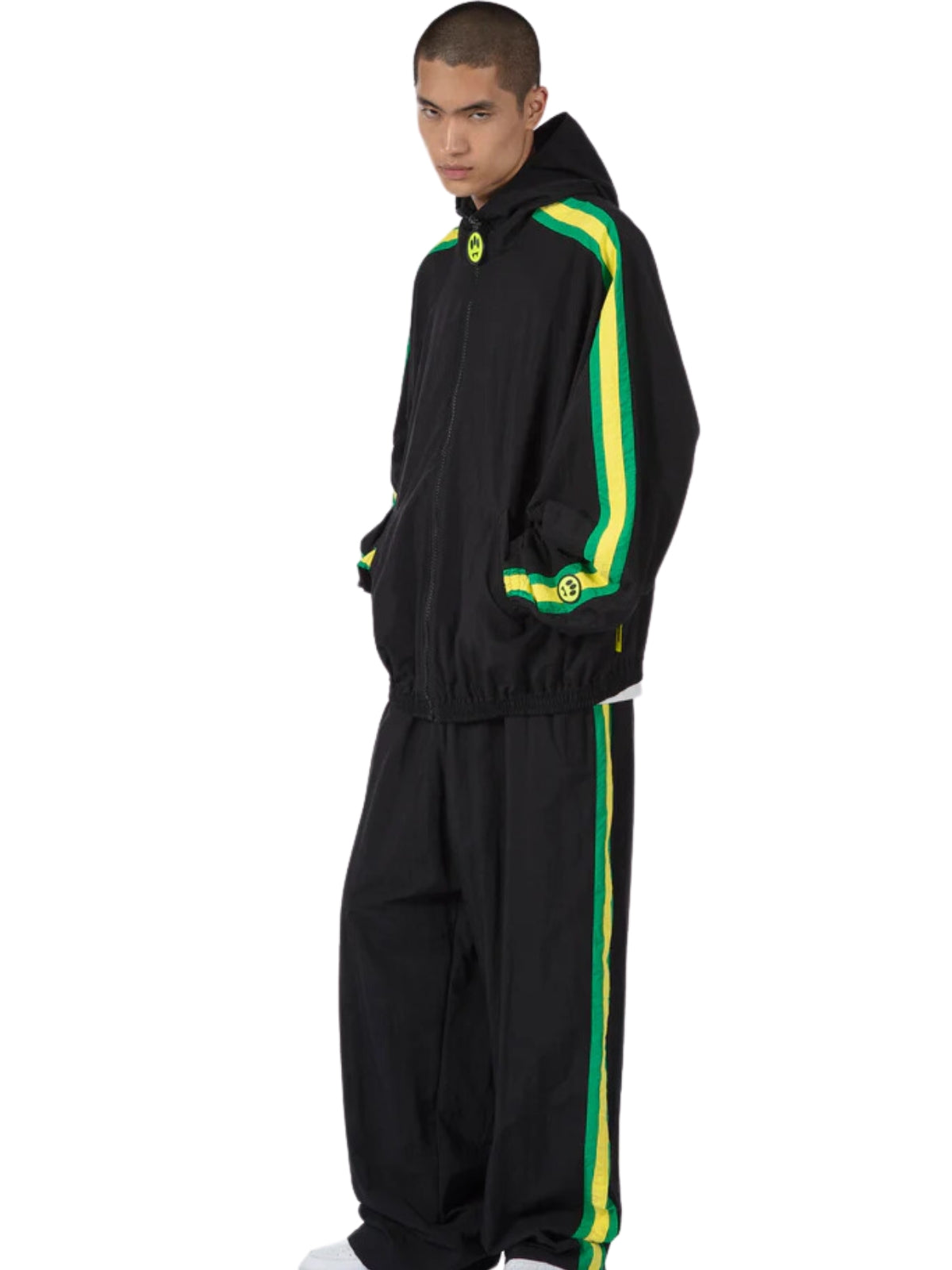 The Barrow Jacket features bold stripes on the sleeves in black, yellow, and green. Made with high-quality materials, this jacket is perfect for adding a pop of color to your wardrobe. Stay warm and stylish with the Barrow Jacket.