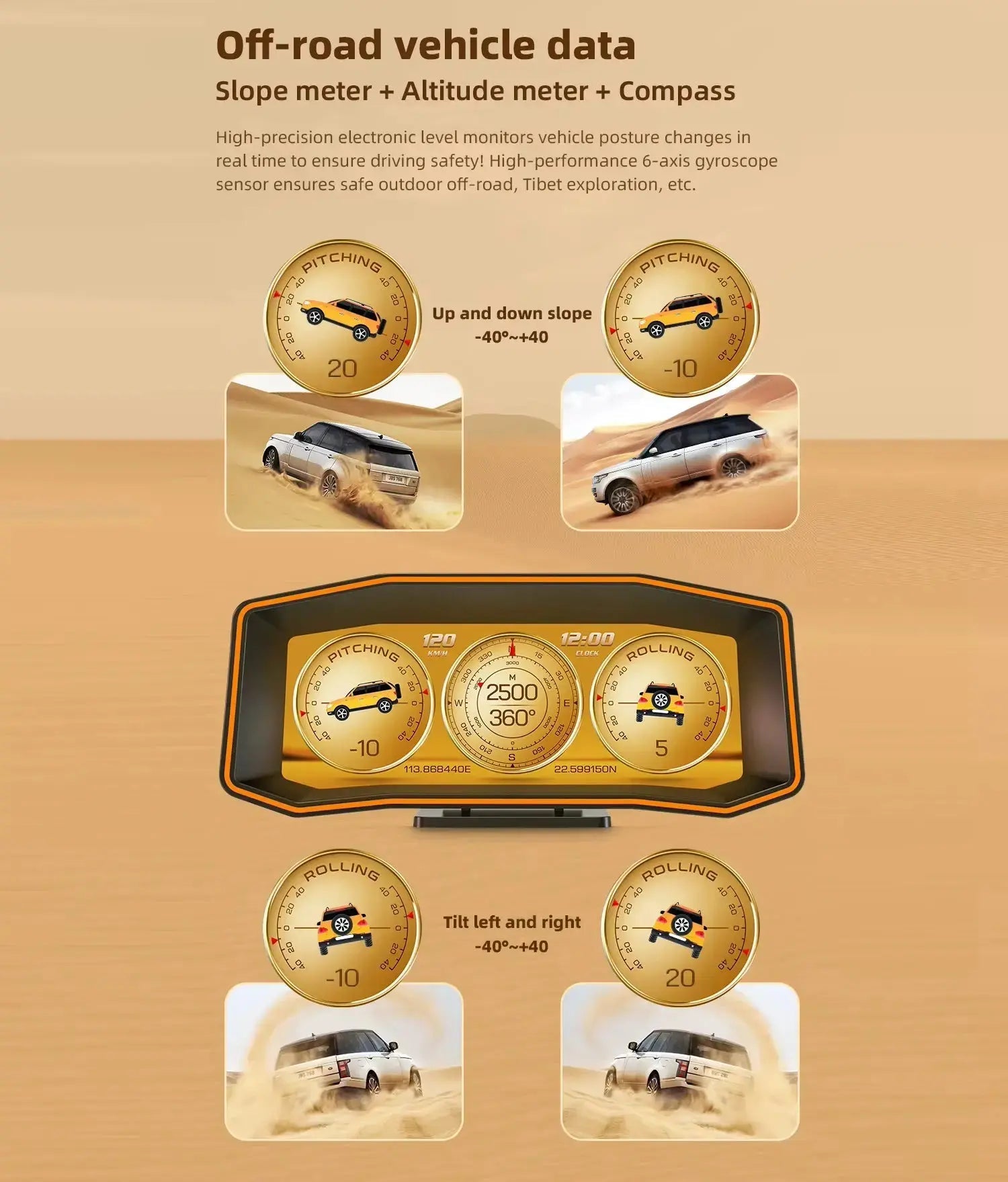Precision off-road tools: For the off-road enthusiast or adventurer, the P4 features a high-precision electronic tilt sensor that actively monitors changes in vehicle attitude in real-time, along with elevation measurement capabilities. Coupled with a compass function for navigation in rugged terrain, this device ensures you're always aware of your surroundings for maximum safety when off-roading or exploring.
