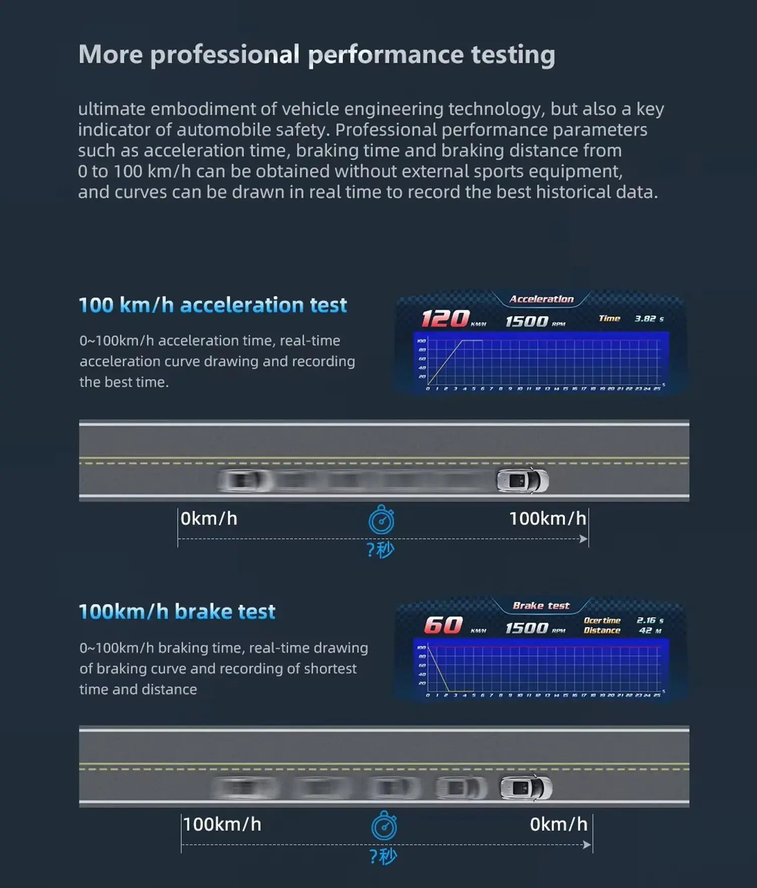 The P4 offers professional-grade performance testing. It calculates key performance indicators such as acceleration times (0-100 mph) and braking distances and even visualizes these statistics through real-time graphing capabilities to draw curves that track historical best performances - helping you to understand and effectively improve both power delivery and braking efficiency.