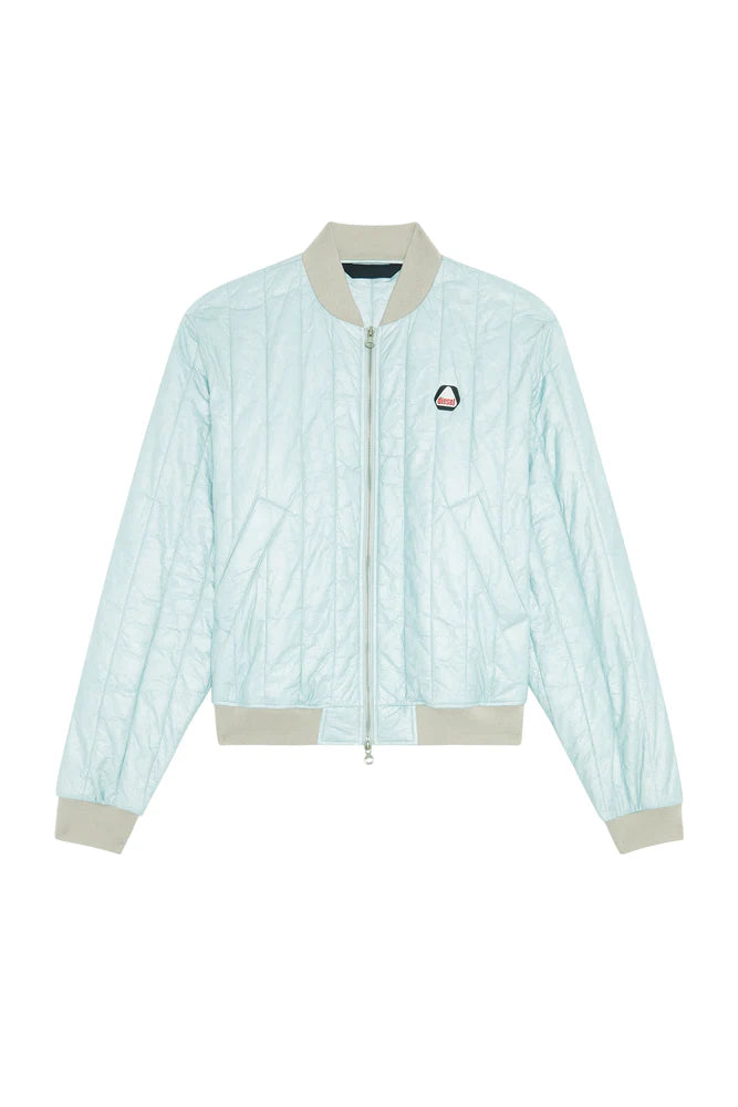 Men's padded bomber jacket with striped quilting, cut to a regular fit from non-woven technical fabric with excellent tearproof and waterproof properties. Branded with a logo patch on the front and a Diesel Industry print on the back.