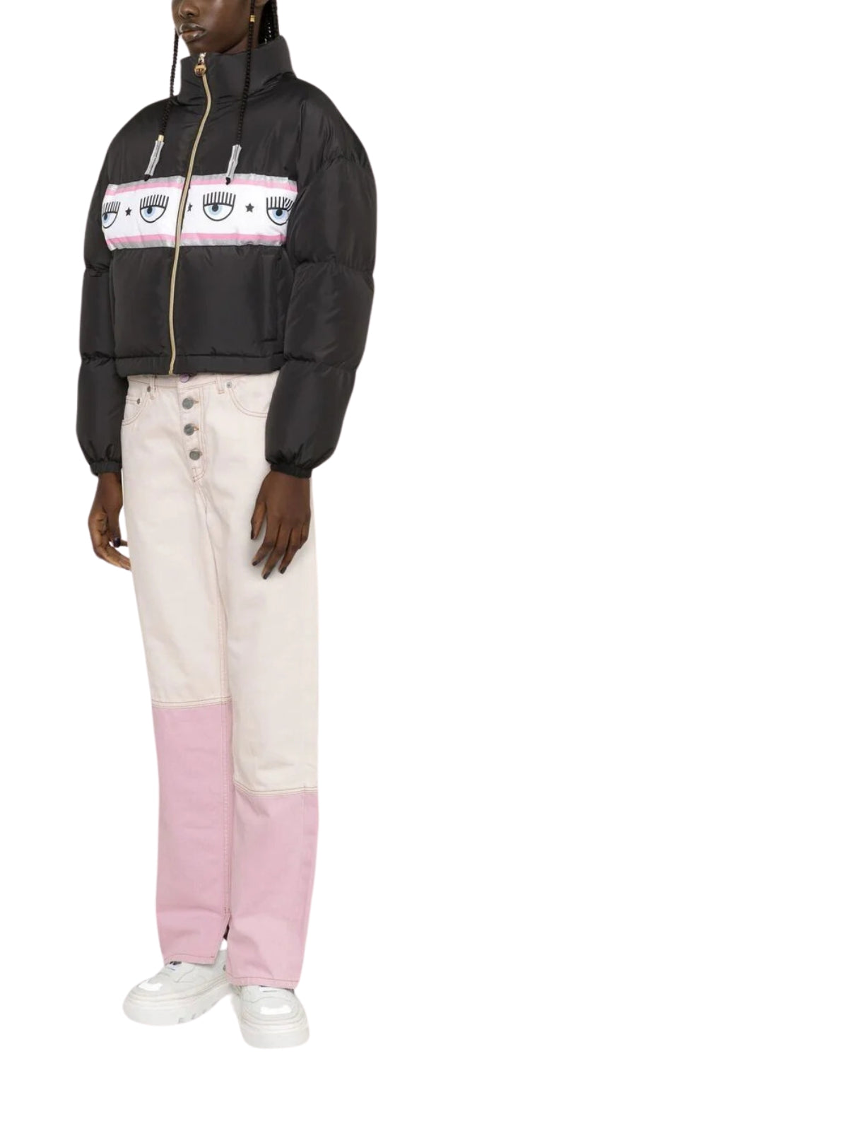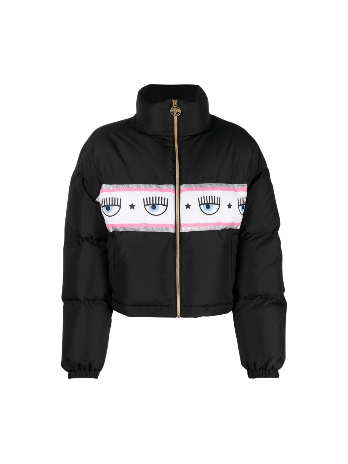 Stay stylish and warm in the Chiara Ferragni Puffer Jacket. With a sleek black design and logo print, this jacket is a must-have for any fashion-forward individual. Featuring high-quality materials and impeccable craftsmanship, this jacket is both functional and fashionable. Elevate your winter wardrobe with this statement piece.