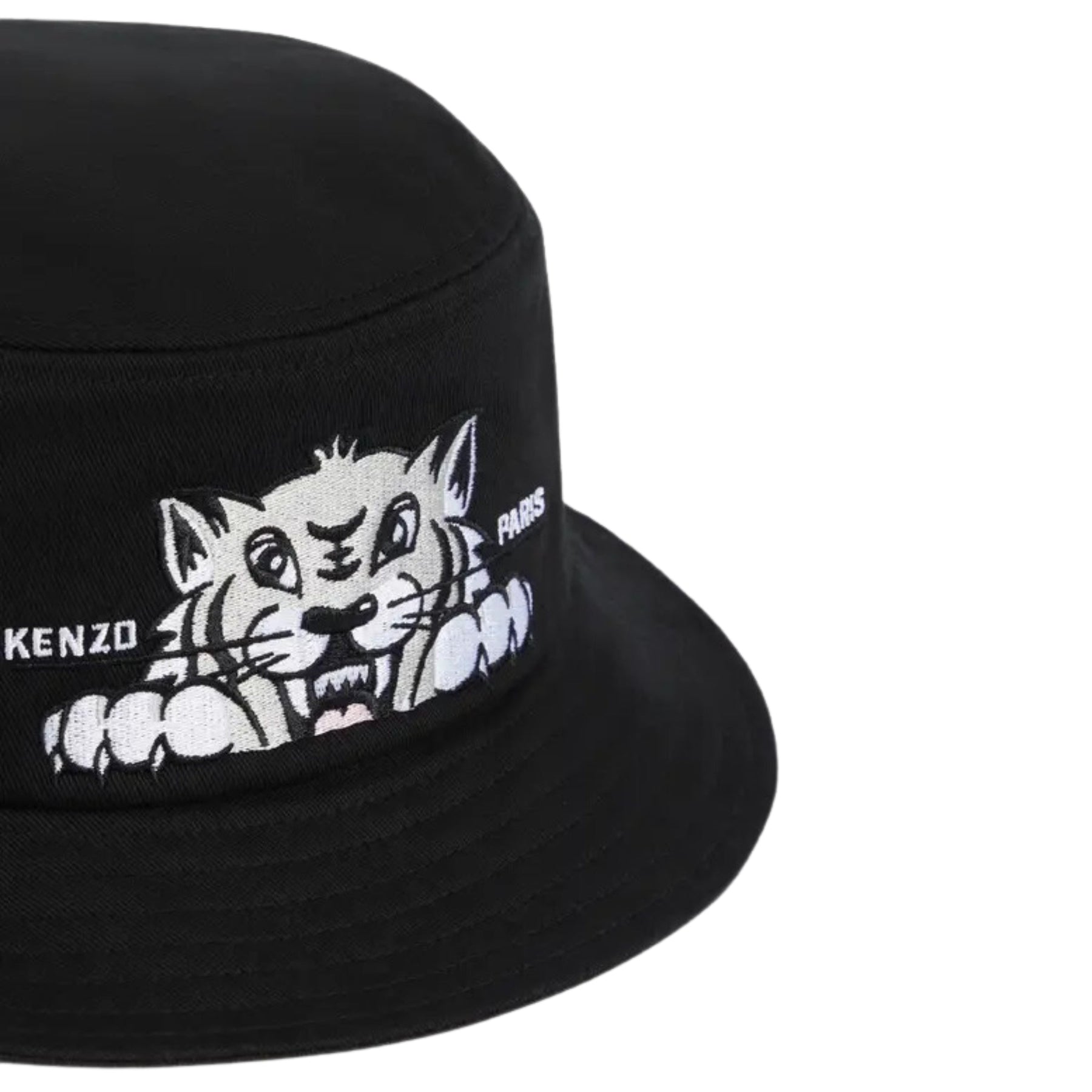 Indulge in the ultimate street style with the Kenzo Bucket Hat Tiger Black. Featuring the iconic Kenzo tiger embroidered on the front, this hat adds a touch of fierceness to any outfit. Made with high-quality materials, it offers both style and comfort for a must-have accessory.