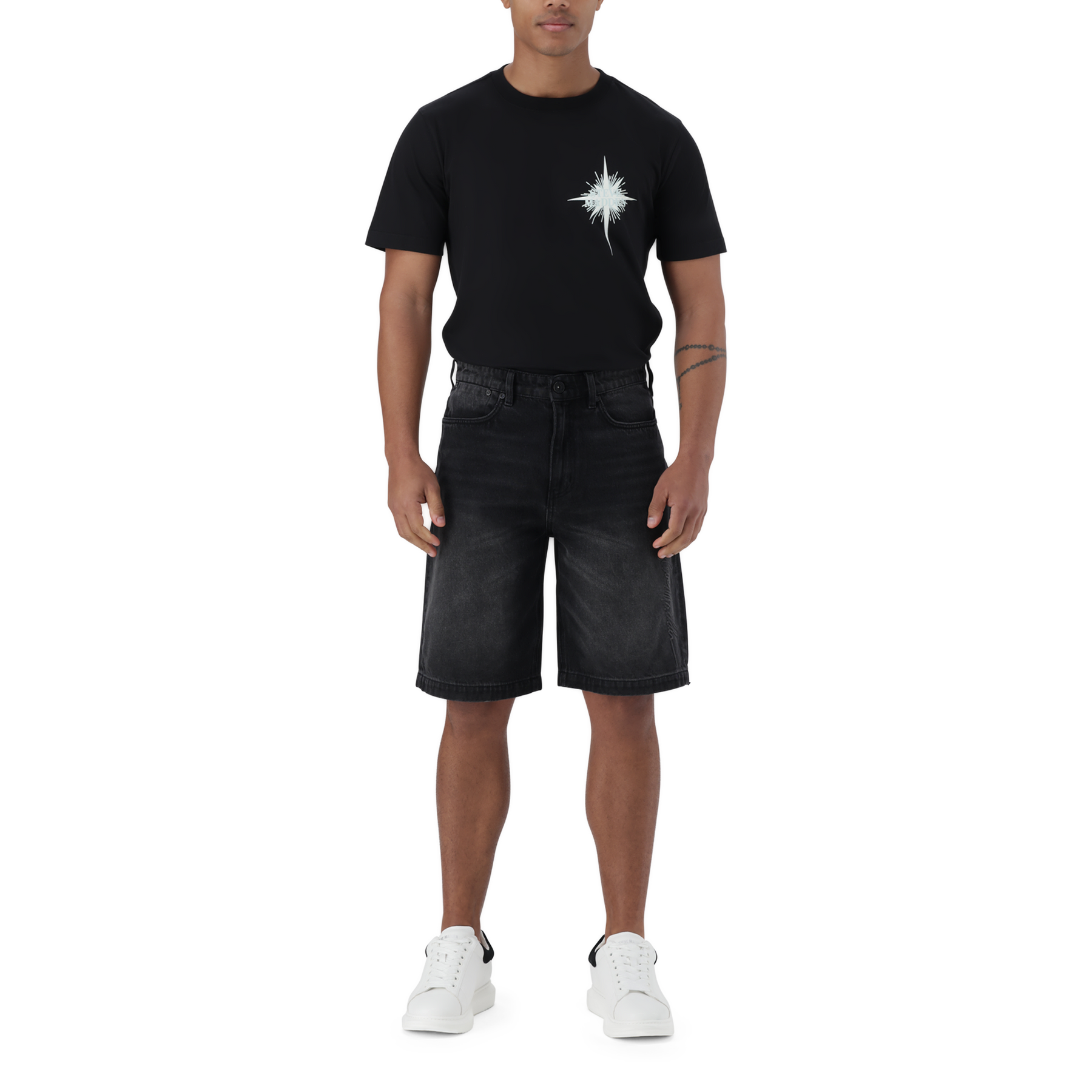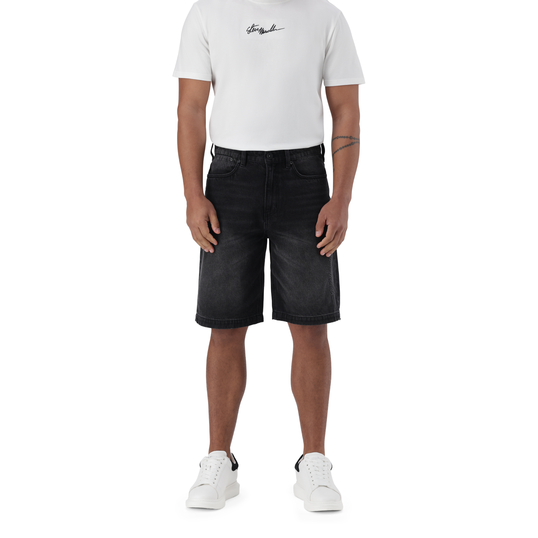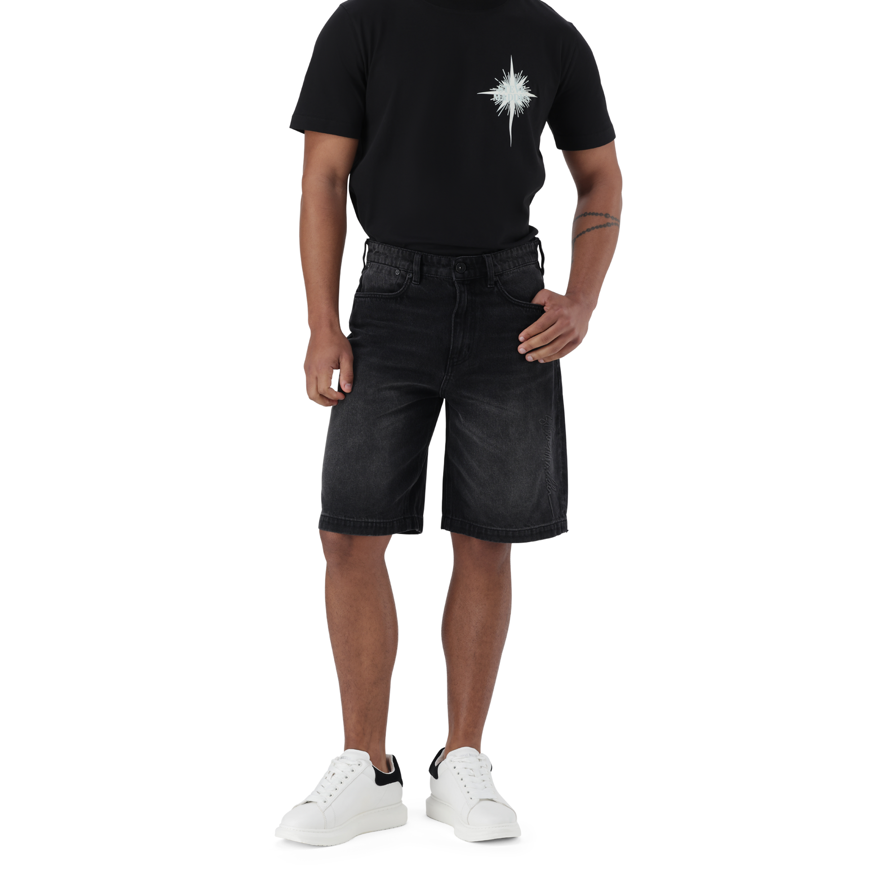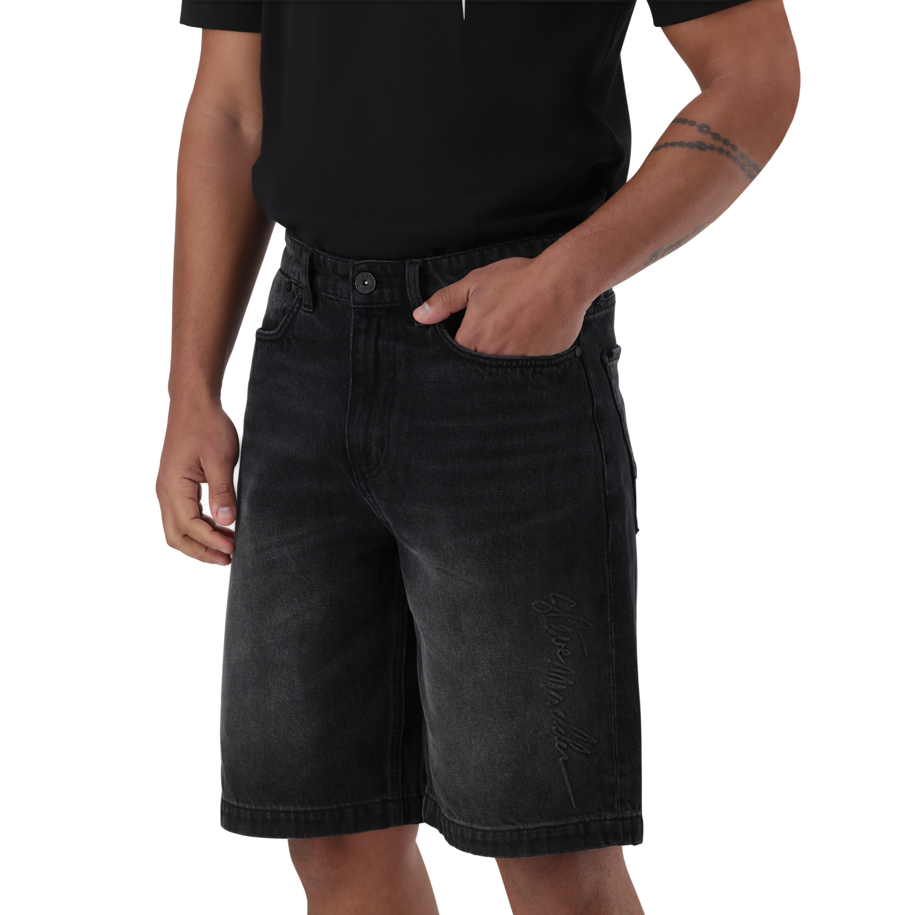 Level up your casual game with these black men’s denim jorts, featuring a signature logo running up the side of the leg. The DEAN is designed for comfort and style, these mid-length shorts offer a relaxed fit with just the right edge. The durable denim fabric makes them perfect for everyday wear, while the standout logo detailing brings serious street-style energy.