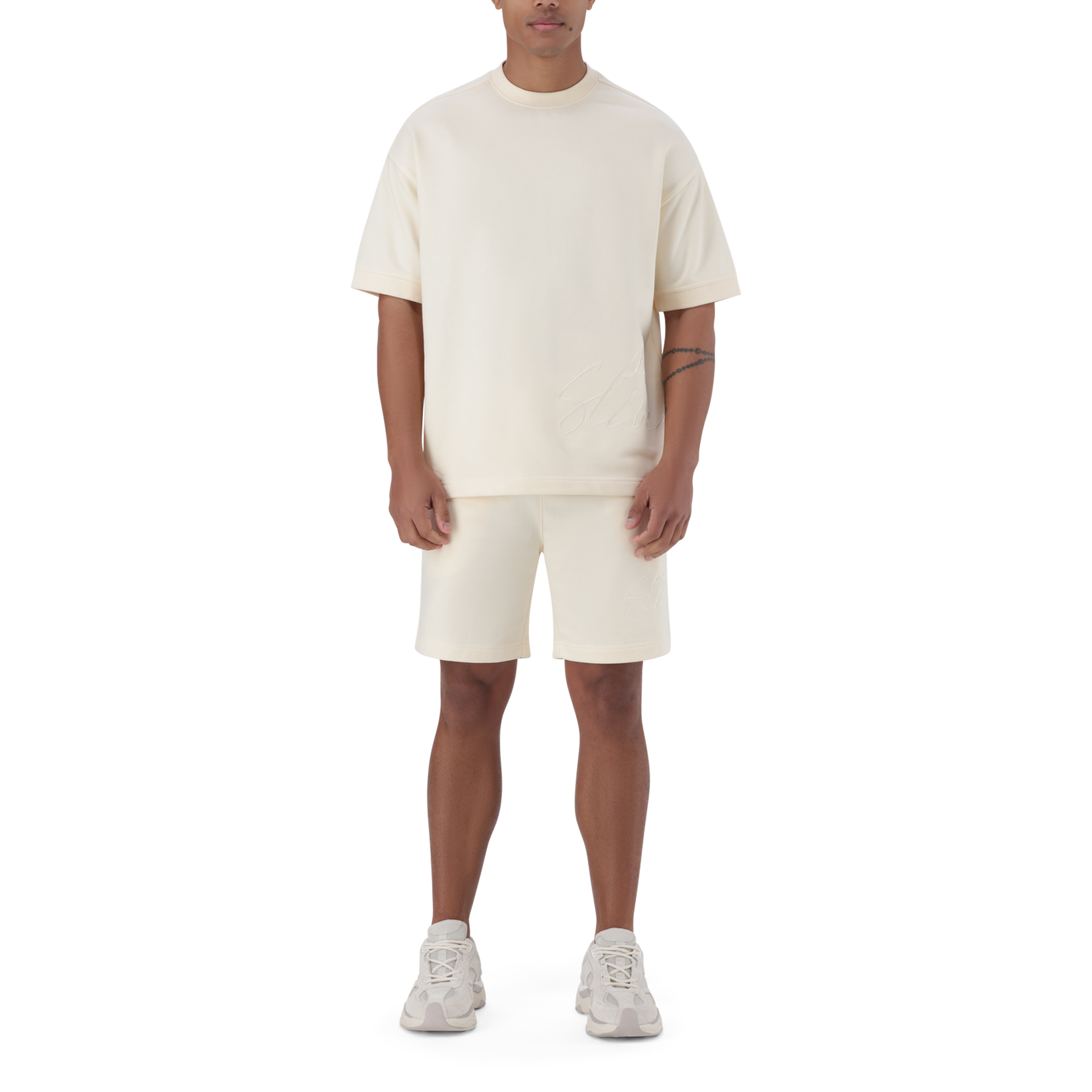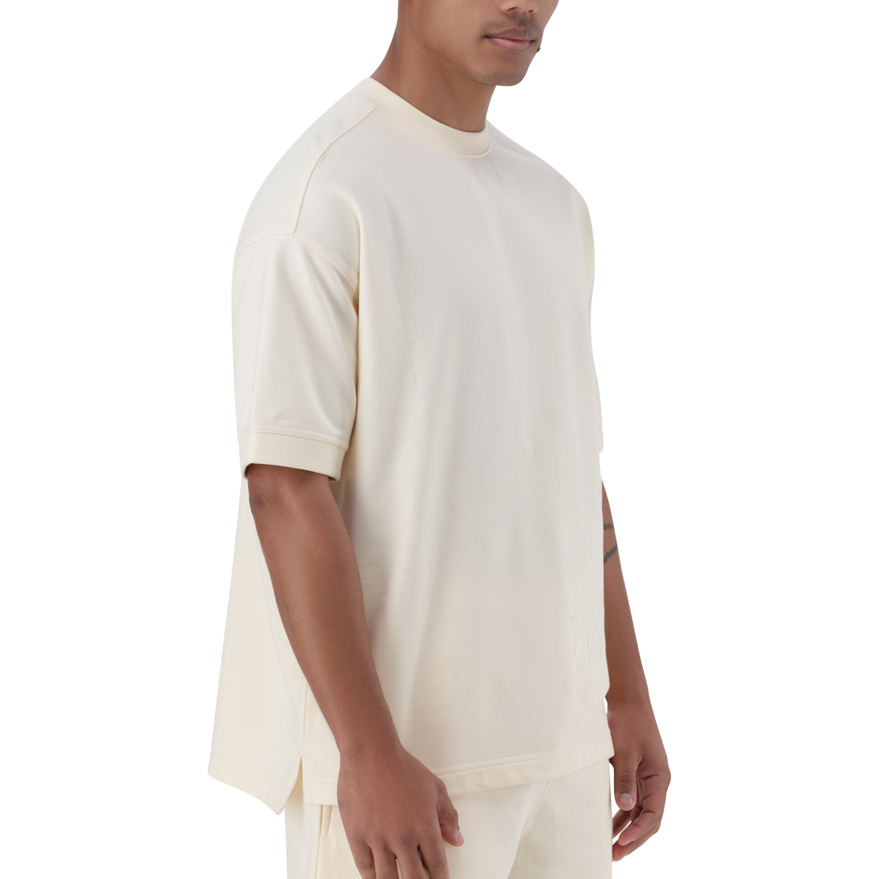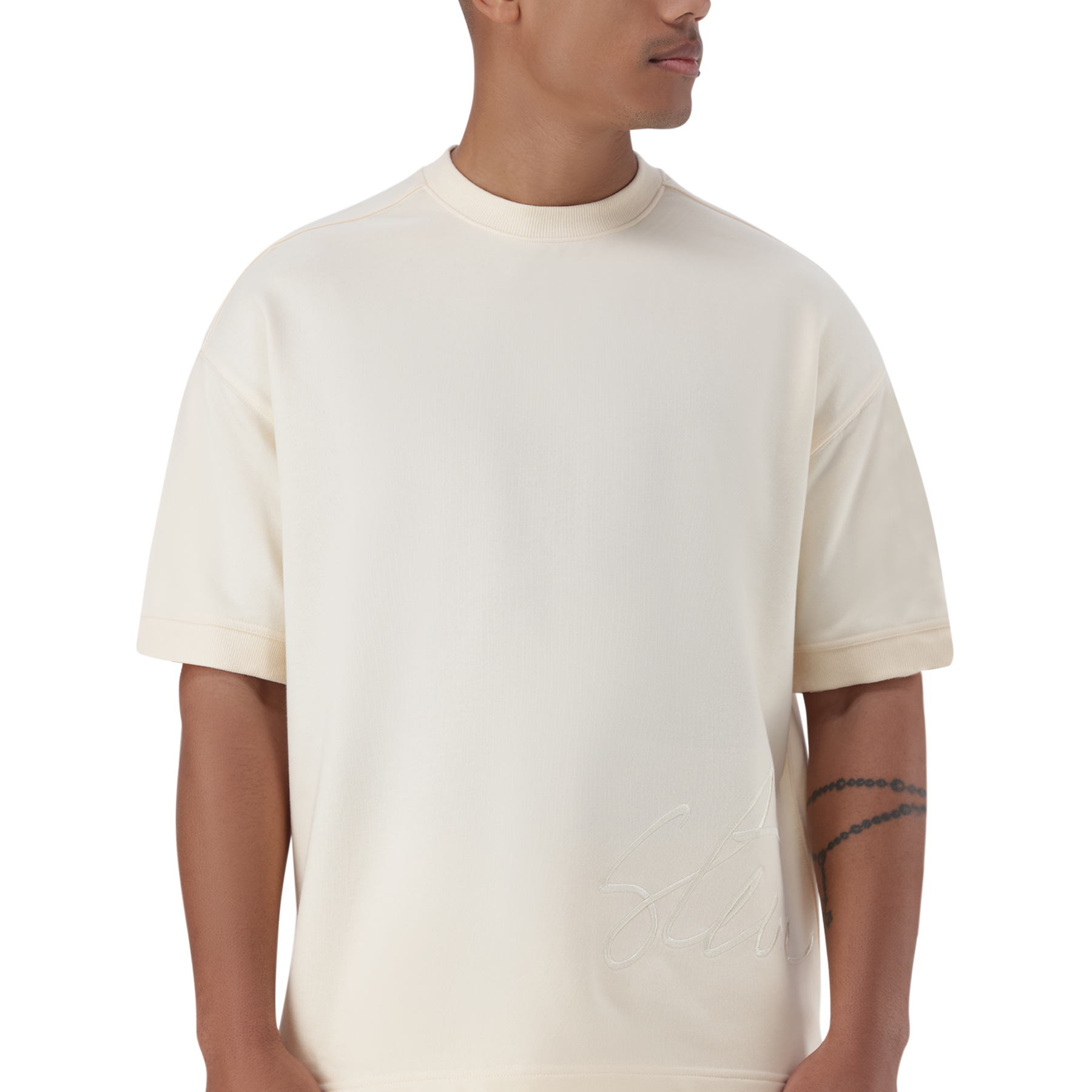 Make a statement in this elevated men’s crew neck T-shirt, featuring a signature logo wrapping from front to back for a bold, connected look. Subtle stitching adds an edgy touch, giving this everyday essential a street-style upgrade. RUSH is made from soft, breathable fabric with a modern fit—this tee brings standout detail to your rotation without sacrificing comfort. This Crew neck Tee pairs perfectly with the TOFE jogger shorts.