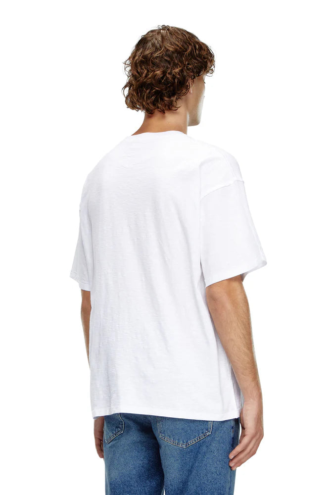 Men's crewneck T-shirt in slubbed jersey, crafted using organic cotton. This tee is cut for a relaxed fit and detailed with a small Diesel 'Biscotto' logo on the chest.
