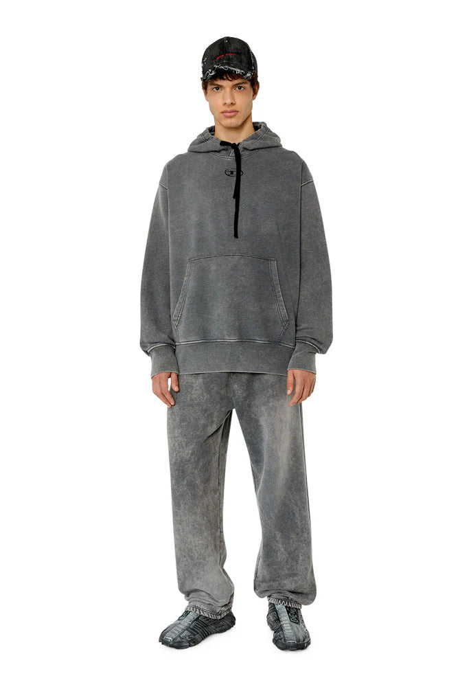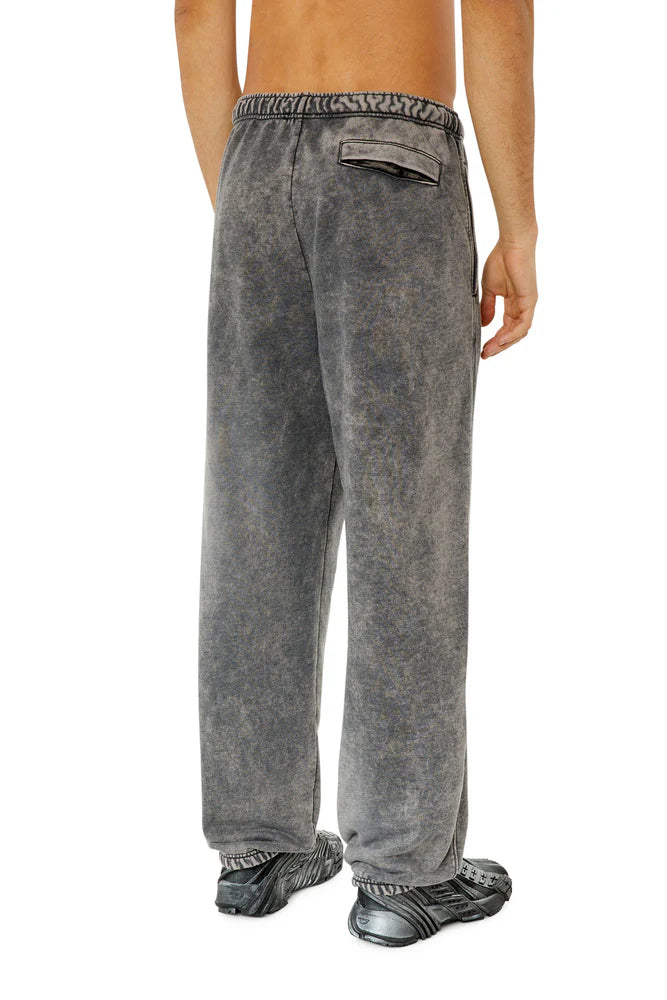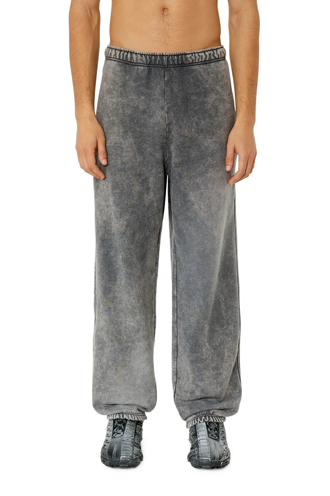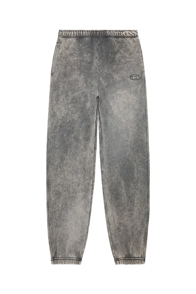 Men's regular-fit tracksuit bottoms, made from a cotton blend to achieve a mélange effect when overdyed. A hand-applied whitening spray imparts a faded look, whilst a tonal injection-moulded oval D print embellishes the left side.