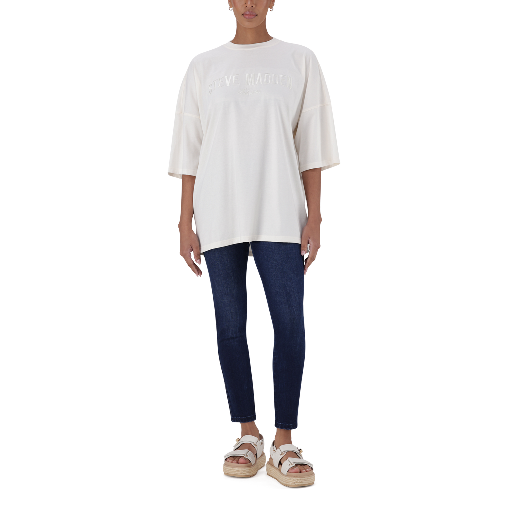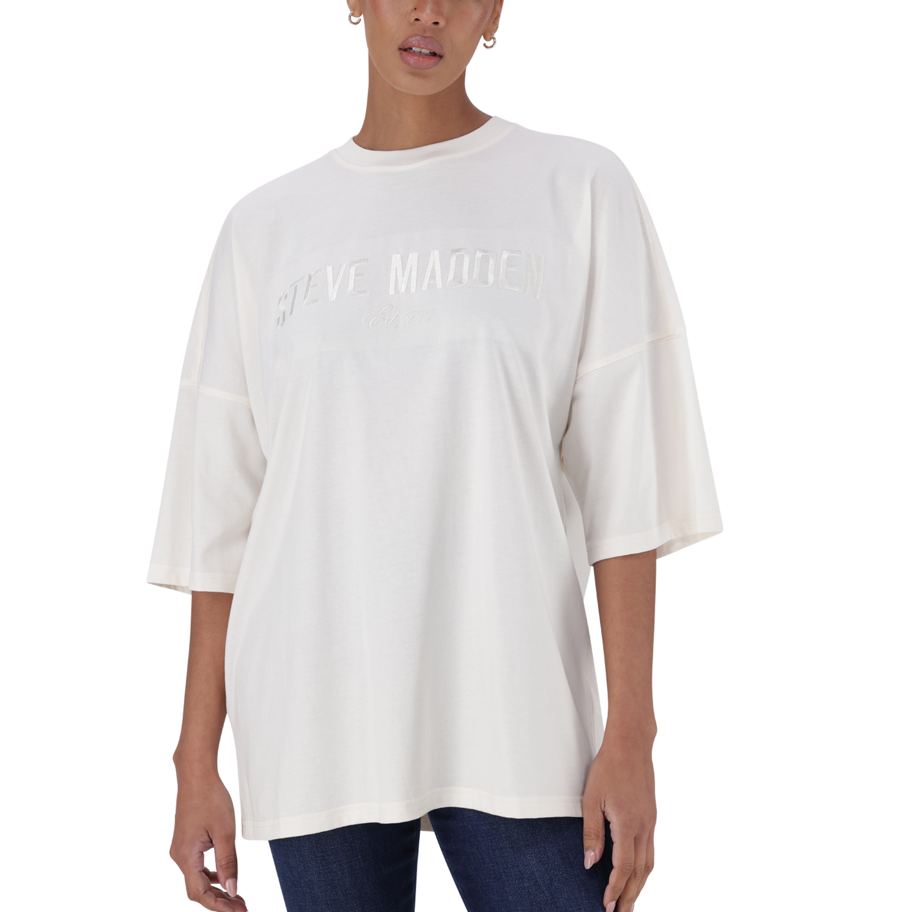 Every girl loves her go-to oversized Tee. This classic piece is perfect for styling and layering in a casual cool way. The Odessa features a Steve Madden logo on the front and bodes casual cool with it's boxy fit.