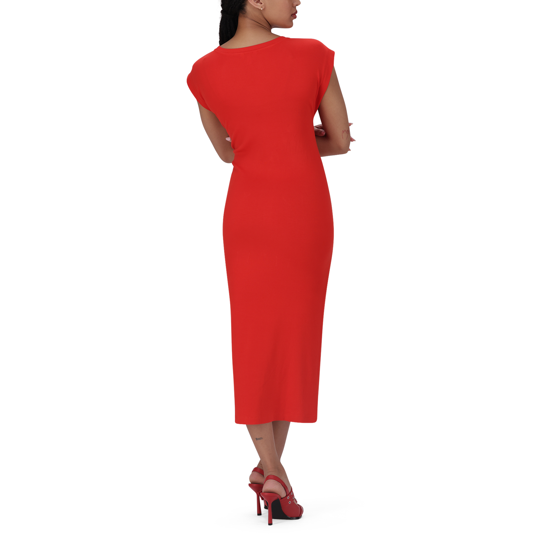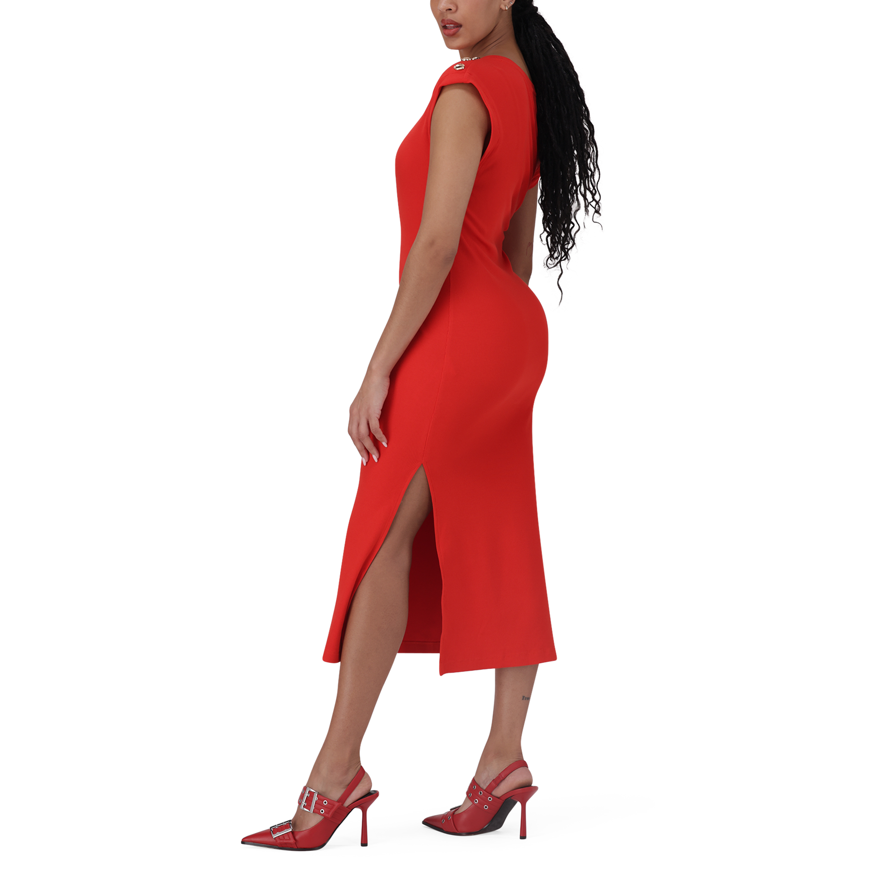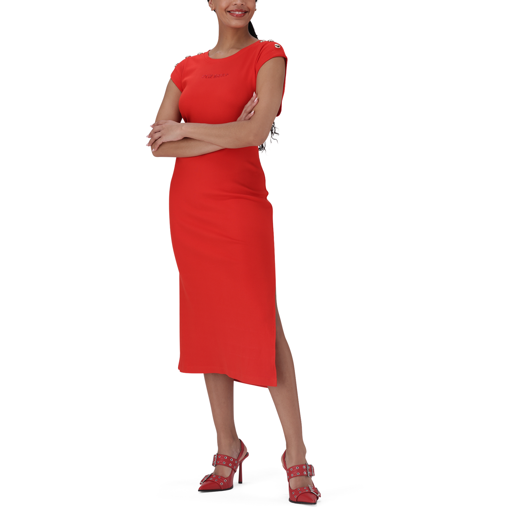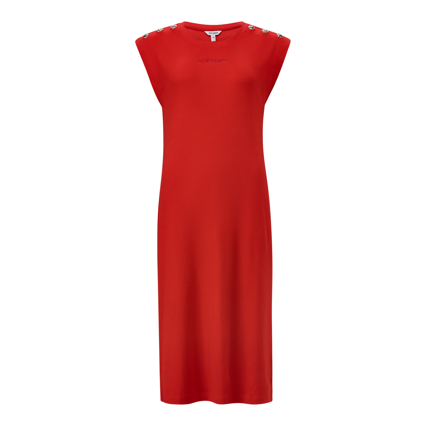 The Elle Tunic Midi Dress in vibrant red combines bold style with modern details. Featuring a striking Steve Madden logo on the front and poppers on the shoulders, this dress offers a unique, eye-catching look. Its tunic-inspired silhouette and midi length make it a flattering and versatile piece, perfect for both casual and dressed-up occasions. Add a pop of colour and effortless chic to your wardrobe with this standout dress.